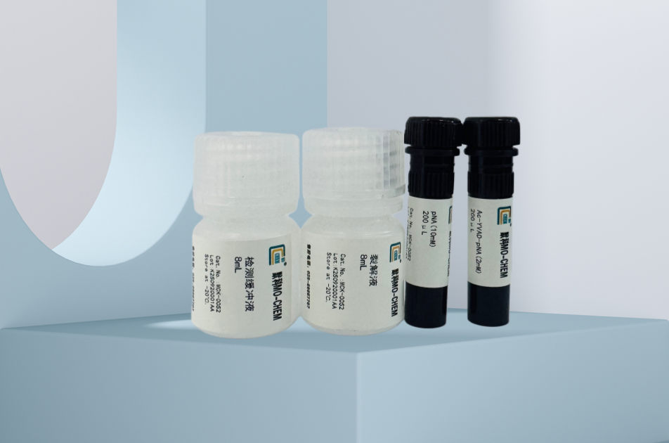 Caspase 1 活性检测试剂盒(Caspase 1 Activity Assay Kit)是采用分光光度法检测细胞或组织裂解液中 caspase 1 酶活性或纯化的 caspase 1 酶活性的试剂盒。 Caspase(Cysteine-requiring Aspartate Protease)是一个在细胞凋亡过程中起重要作用的蛋白酶家族。Caspase 1 也称 interkeukin 1b conberting enzyme(ICE),有时被写作 caspase-1 或 caspase 1,是 caspase 家族中唯一可以剪切 IL-1b 前体蛋白或 IL-18 前体产 生相应成熟的细胞因子的 caspase。Caspase 11 可以剪切 45kD 的 caspase 1 前体蛋白,产生 20kD 和 10kD 的片段,这两个片段可以形成异 源二聚体(heterodimer),并进一步由两个异源二聚体形成四聚体。Caspase 1 可以通过剪切其凋亡 Bcl-XL 来调节细胞凋亡,并通过其对一 些细胞因子前体的剪切来调控相关免疫反应。 本 Caspase 1 活性检测试剂盒是基于 caspase 1 可以催化底物 Ac-YVAD-pNA(acetyl-Tyr-Val-Ala-Asp p-nitroanilide)产生黄色的 pNA(p-nitroaniline),从而可以通过测定吸光度来检测 caspase 1 的活性。pNA 在 405nm 附近有强吸收。 试剂盒中提供了 caspase 1 催化产生的黄色产物 pNA,可以作为定量 caspase 1 酶活性的标准品。