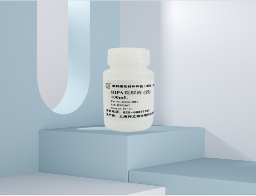RIPA裂解液(RIPA Lysis Buffer)是一种传统的细胞组织快速裂解液。RIPA裂解液裂解得到的蛋白样品可以用于常规的PAGE、Western、免疫沉淀(immunol precipitation,IP)、免疫共沉淀(co-IP)和ELISA等。本产品可以用于动物、植物的细胞或组织样品,也可以用于真菌或细菌样品。